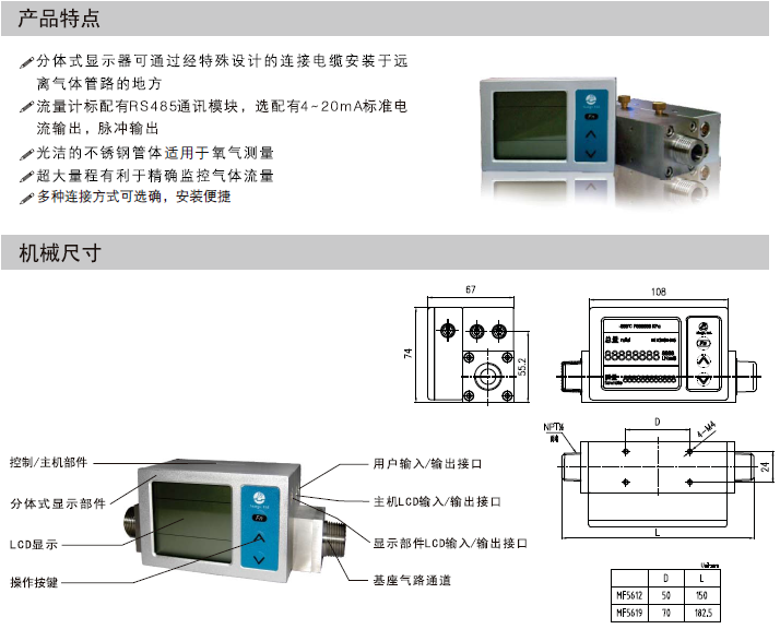 MF5600 系列質(zhi)量流量(liàng)計 專門爲(wèi)需要顯(xiǎn)示器和(he)表體分(fen)離的應(yīng)用需求(qiu)而設計(ji)的。例🔴如(ru)醫院供(gong)氧系統(tong)小型空(kong)分系統(tong)。該流量(liàng)計⛷️的标(biāo)準工業(ye)用戶界(jiè)面 (RS485/4~20mA)及用戶(hù)自定報(bào)警功能(neng)更好實(shi)現的異(yì)地或網(wǎng)絡監🐪控(kong)。現♊有的(de)産品是(shì) MF5612和(hé) MF5619可(kě)分别測(cè)量 0-300SLPM和 0-800SLPM氣體流(liu)量。 有什麽(me)技術請(qing)廣州迪(di)川儀器(qì)儀表有(yǒu)限公司(sī)