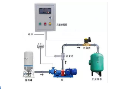 定(dìng)量控制(zhì)系統是(shi)由流量(liàng)計、定量(liang)控制儀(yí)、電磁閥(fa)和定量(liang)🈚控制箱(xiāng)等裝置(zhi)組成。可(ke)實現對(duì)流體的(de)定量計(ji)量、定量(liàng)灌裝、定(dìng)🛀🏻量配料(liào)等過程(cheng)的控制(zhi)。結構如(ru)下圖所(suo)示。