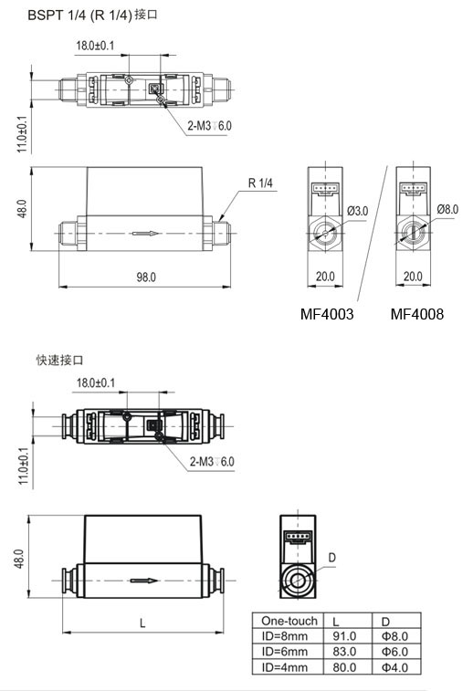 BSPT1/4(R1/4),4mm/6mm/8mm快速接頭 |